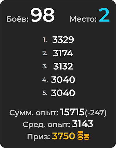 Виджет позволяет получить дату, время и название реплеев лучшей серии боёв в турнире от