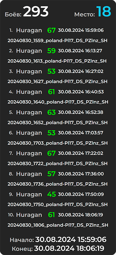 А также время начала и окончания лучшей серии боёв