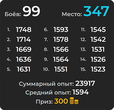 Виджет отображает прогресс в турнире Colizeum. Личный Зачёт - ONLINE. в случайных боях